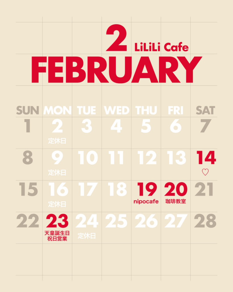 🌼LiLiLi Cafe 2月営業カレンダー🌼